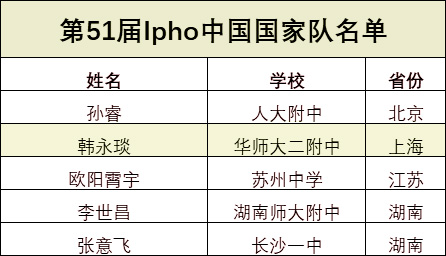 其中来自华师大二附中的韩永琰已经入选了此次的物竞国家队: